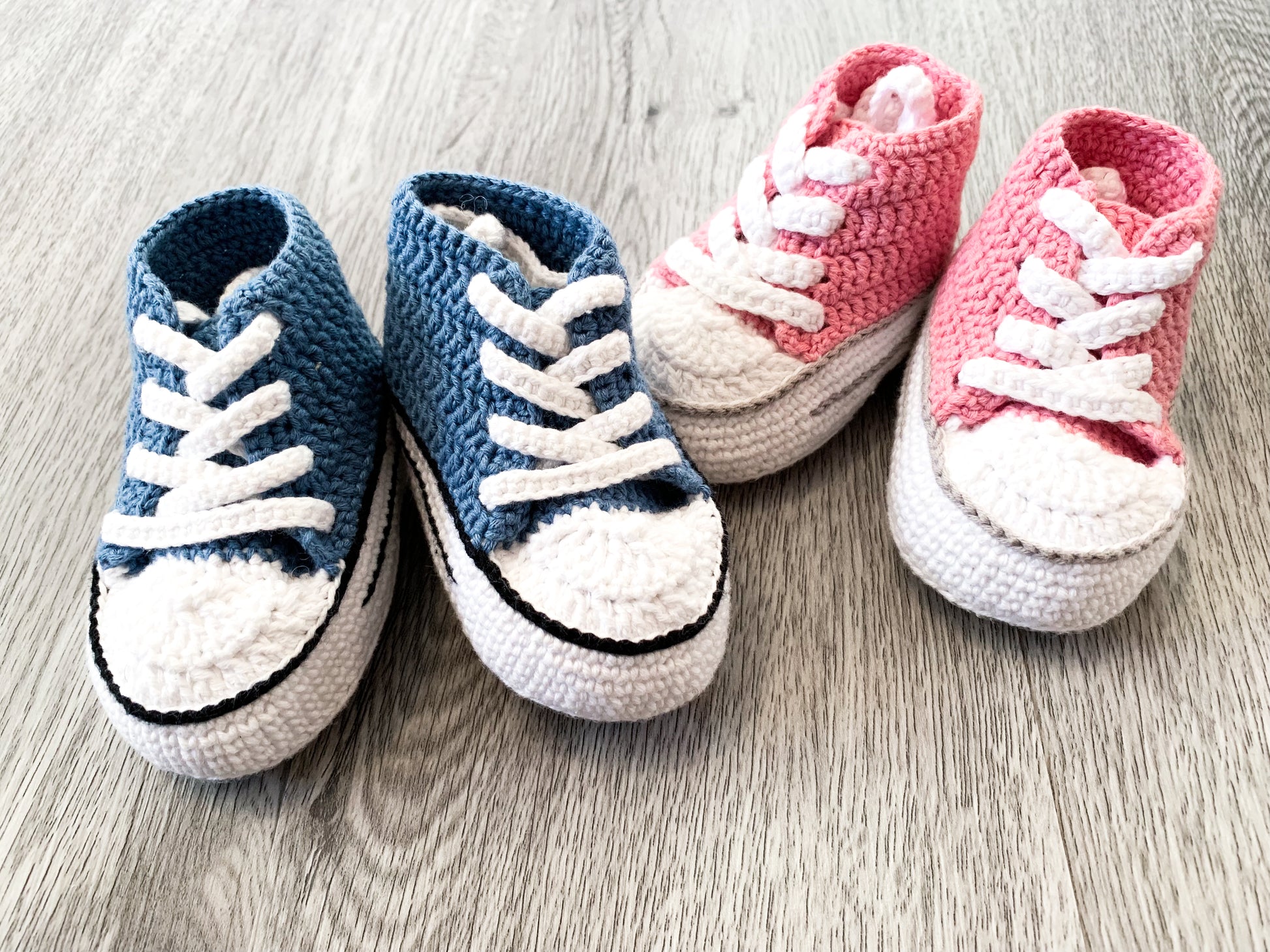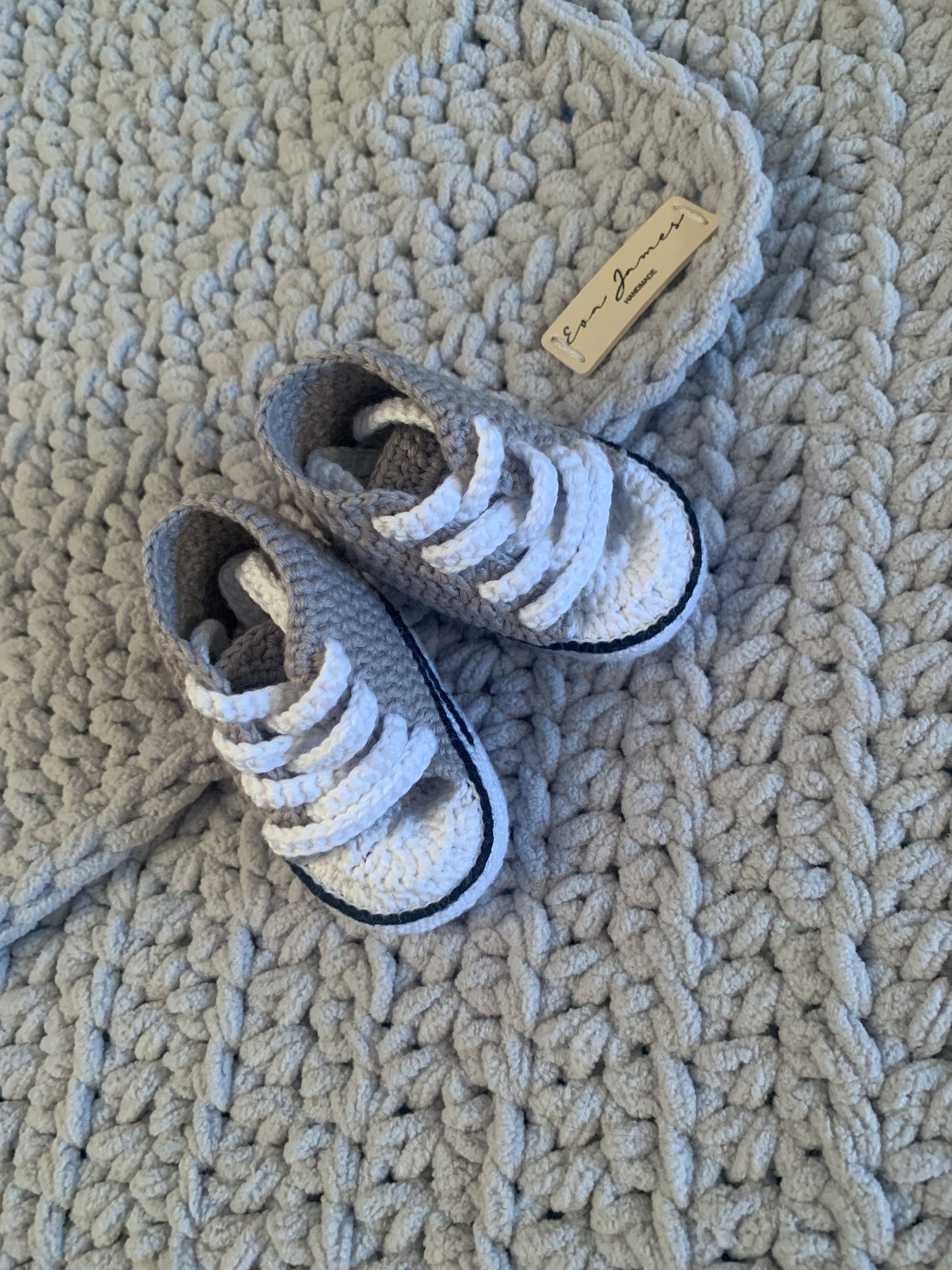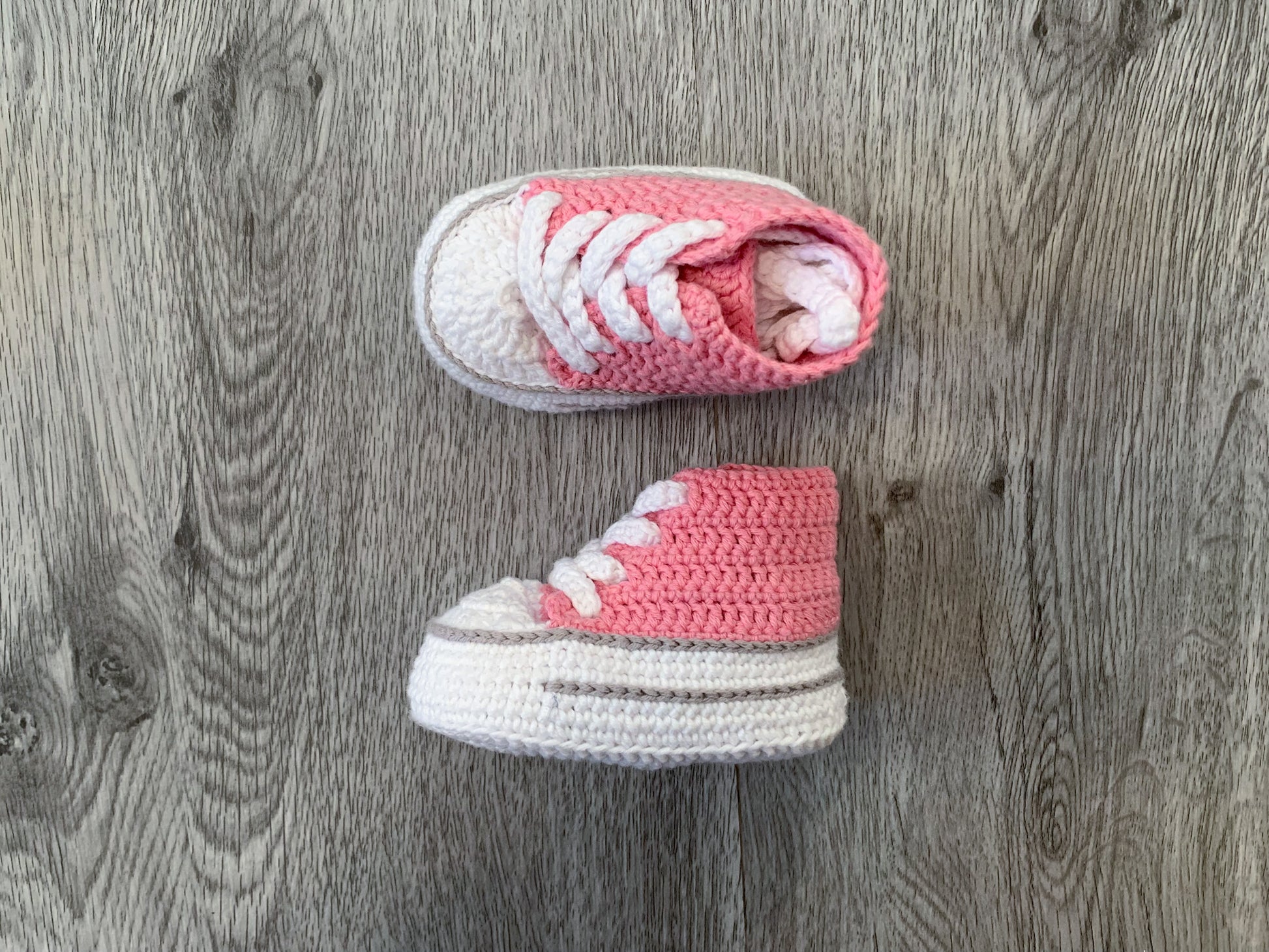 Handmade crocheted high top booties for babies who are too young to wear hard sole shoes