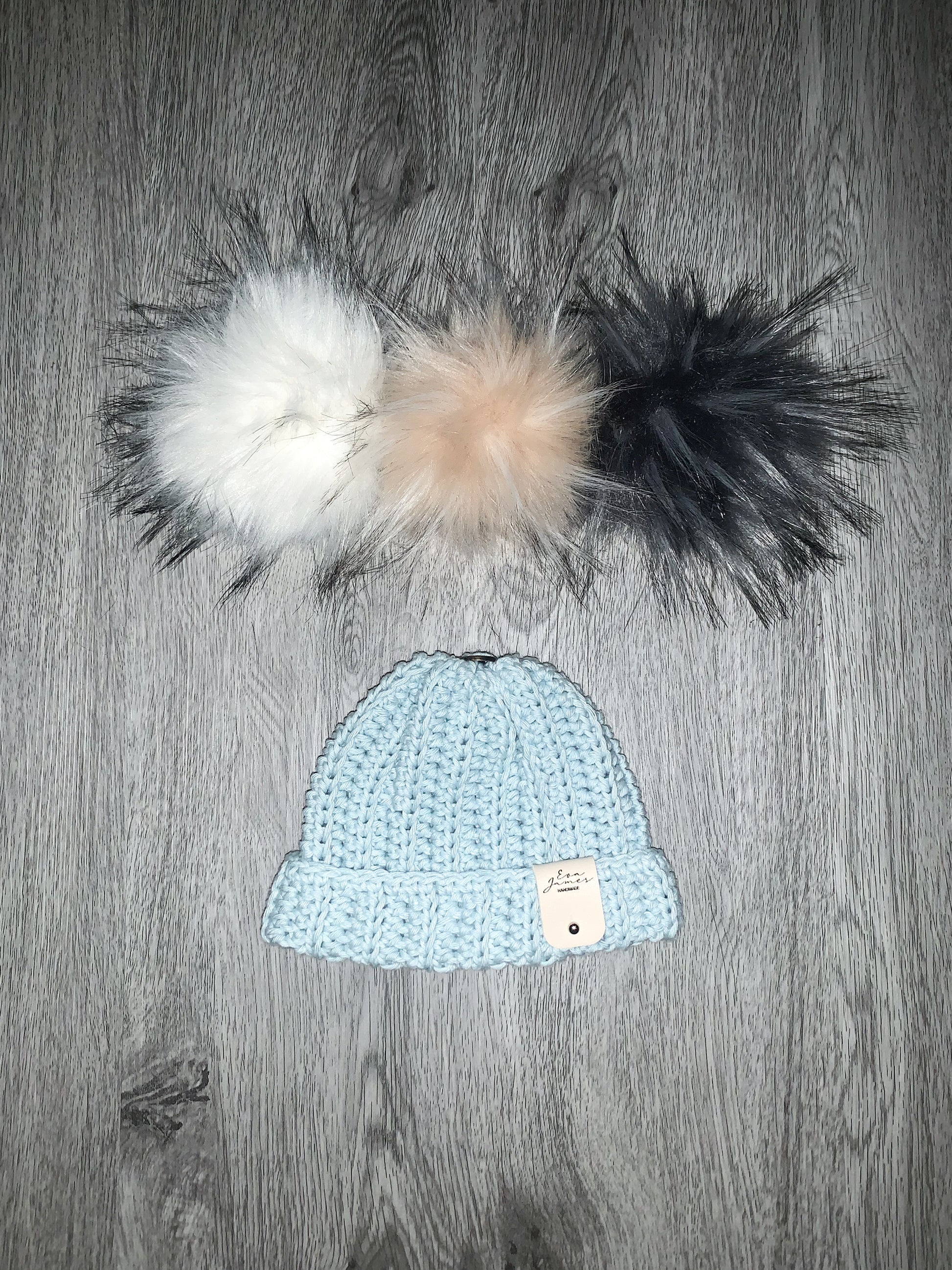 This pom pom hat is handmade with 100% cotton, and features detachable pom poms for easy washing and colour-swapping.